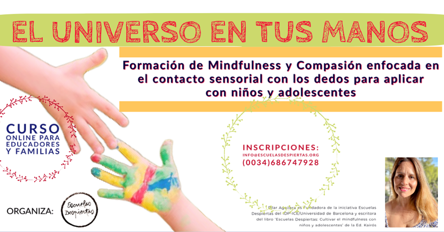 Este curso recoge y desarrolla en profundidad una gran diversidad de recursos didácticos en forma de currículum secuenciado y organizado. Las actividades de mindfulness y compasión enfocadas en los dedos promueven en educadores, niños y adolescentes el contacto profundo con uno/a mismo/a, la vuelta al momento presente, la regulación de la atención y la concentración, la autoestima y el autocuidado, la gestión de la ansiedad y el miedo, y la amabilidad bondadosa con los demás y con nuestro amado planeta.